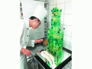 台湾主厨巧手拉糖造“大楼”(图)